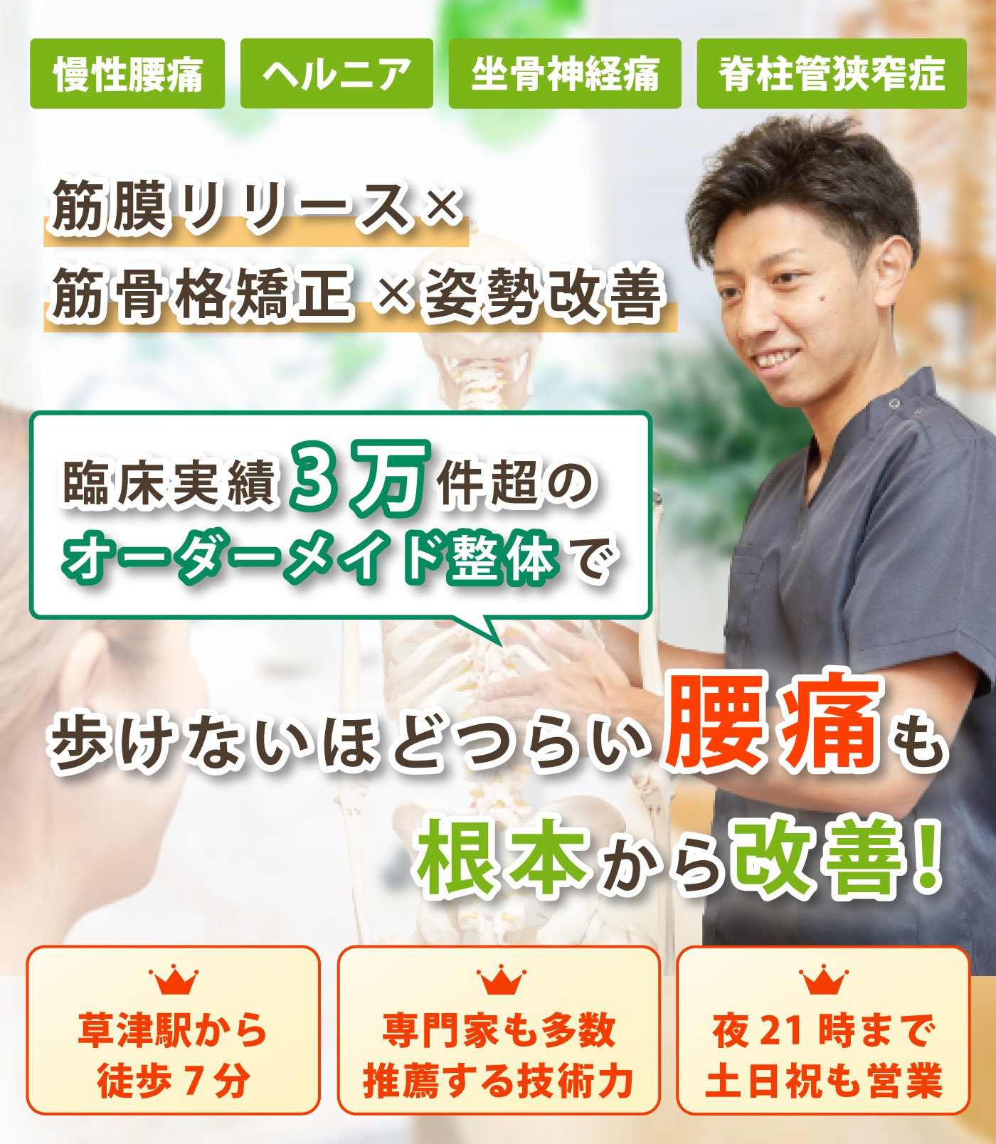 草津市で腰痛に特化した専門整体 | 草津駅から徒歩7分